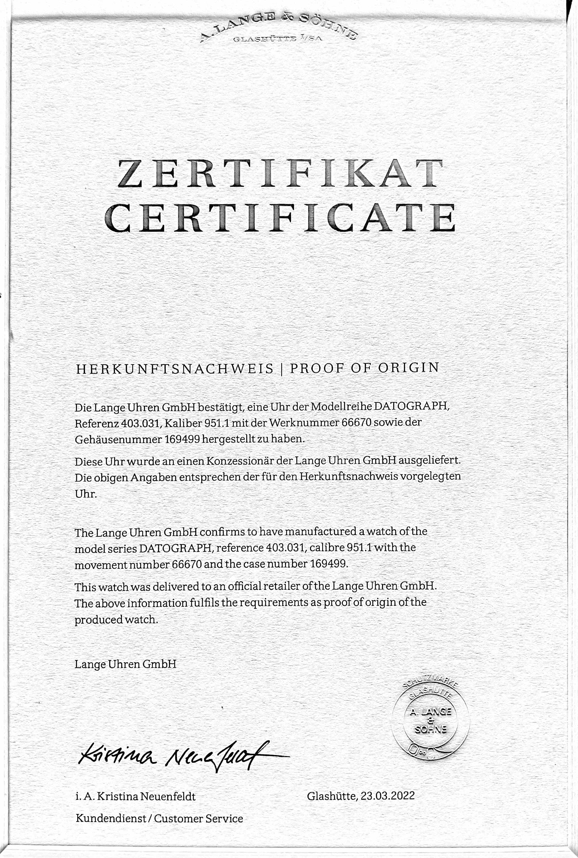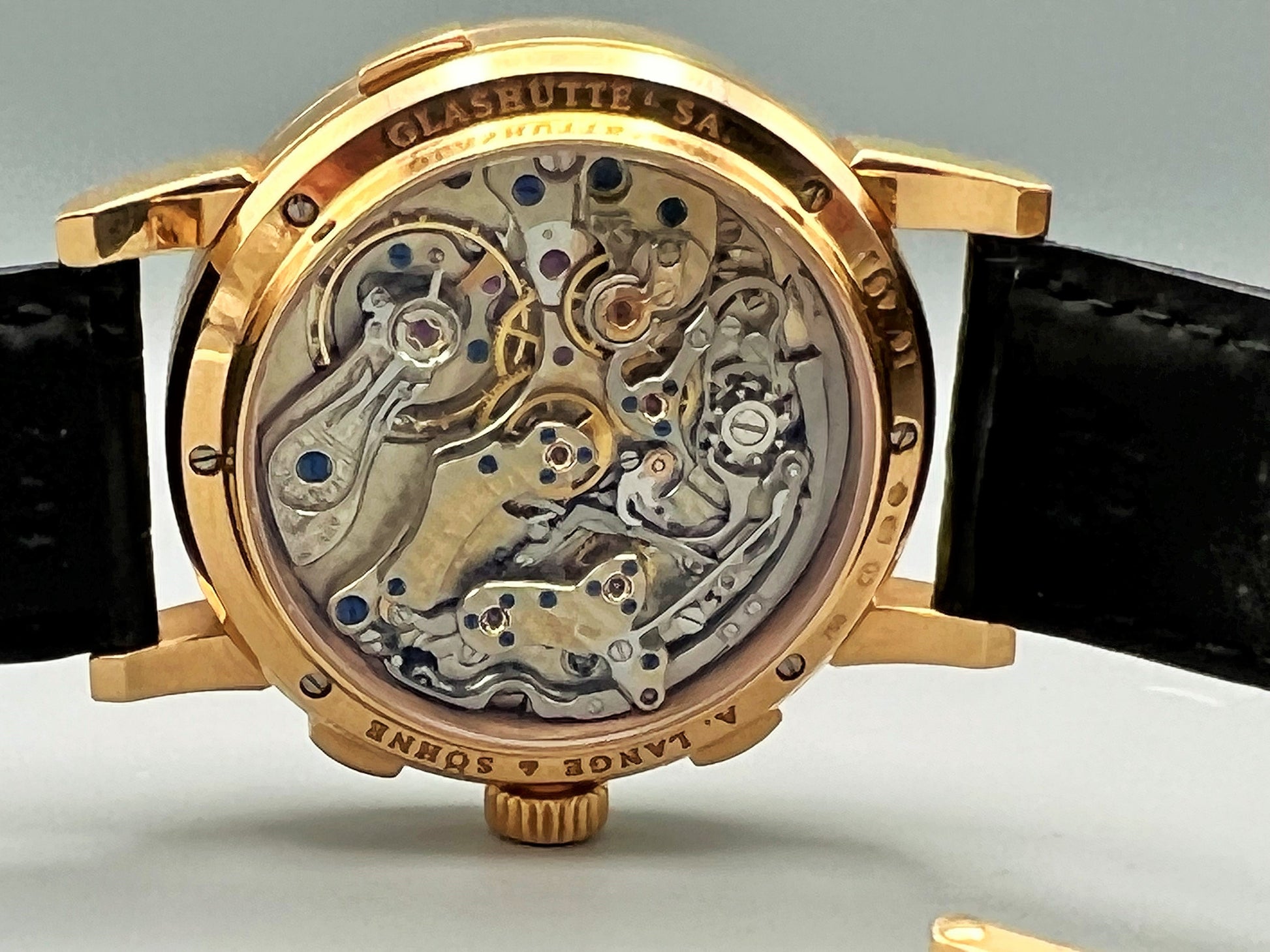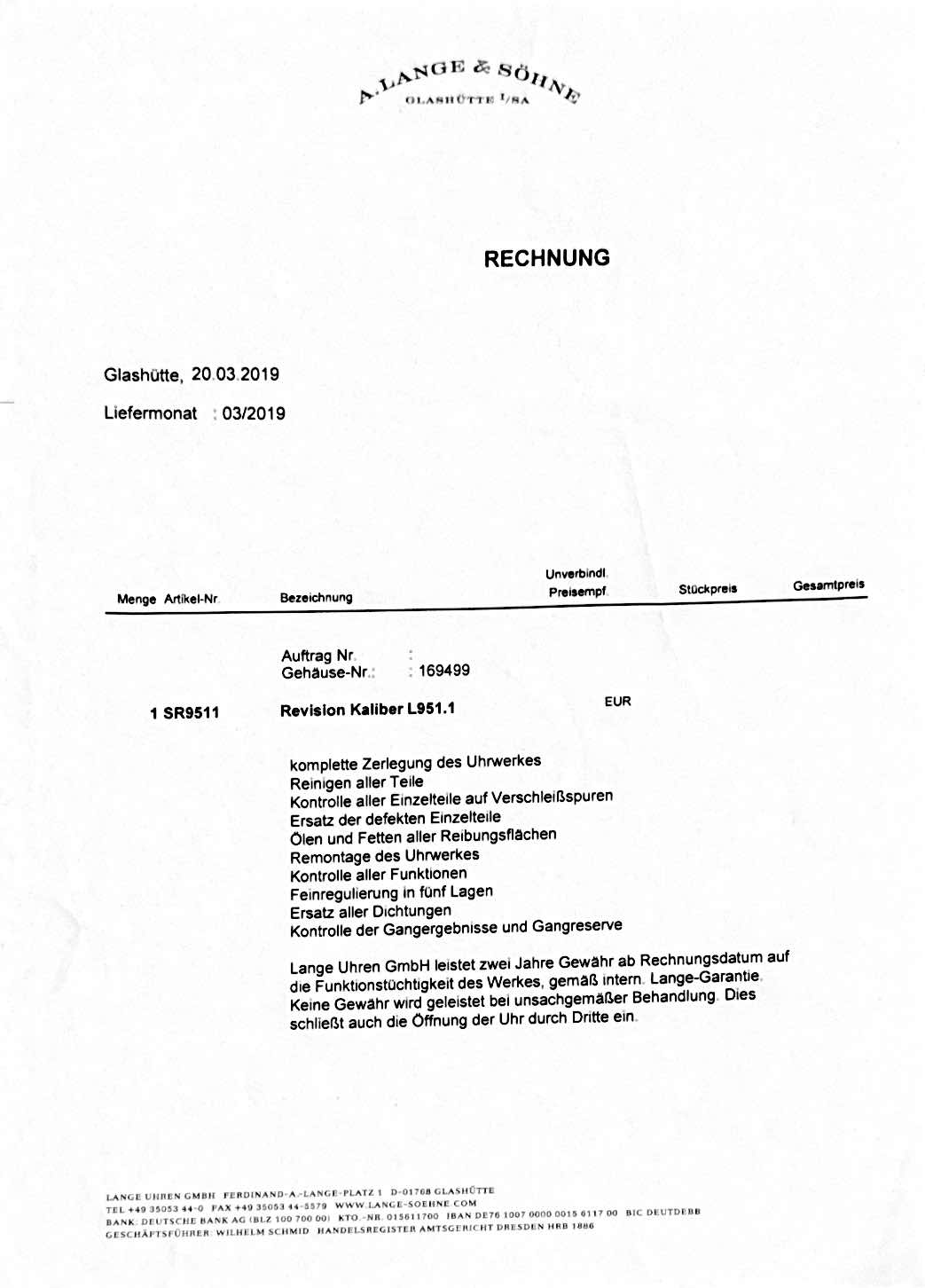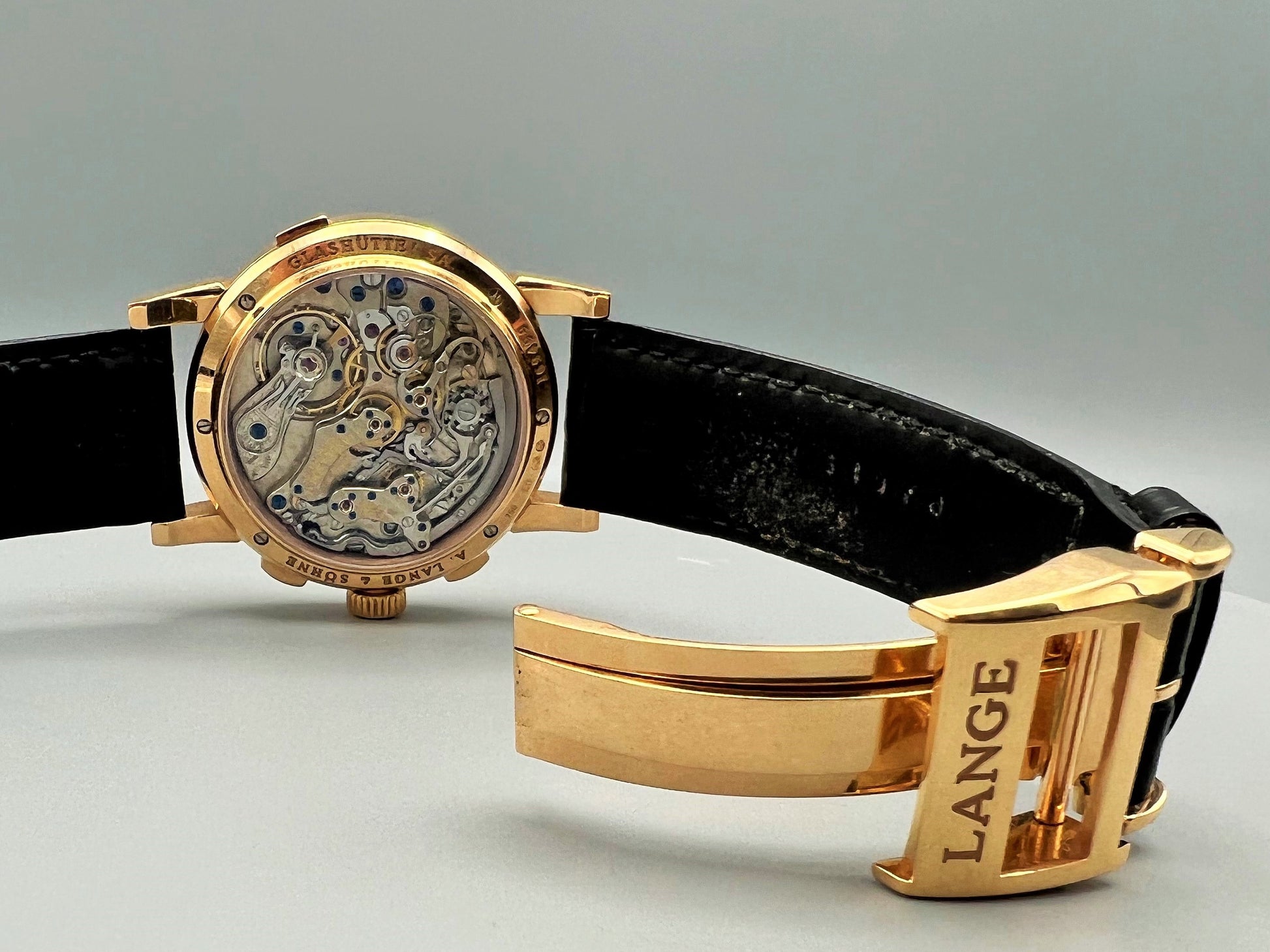 This watch was serviced by Lange in 2019. It comes with box, certificate of authenticity from A. Lange & Söhne, and service papers.