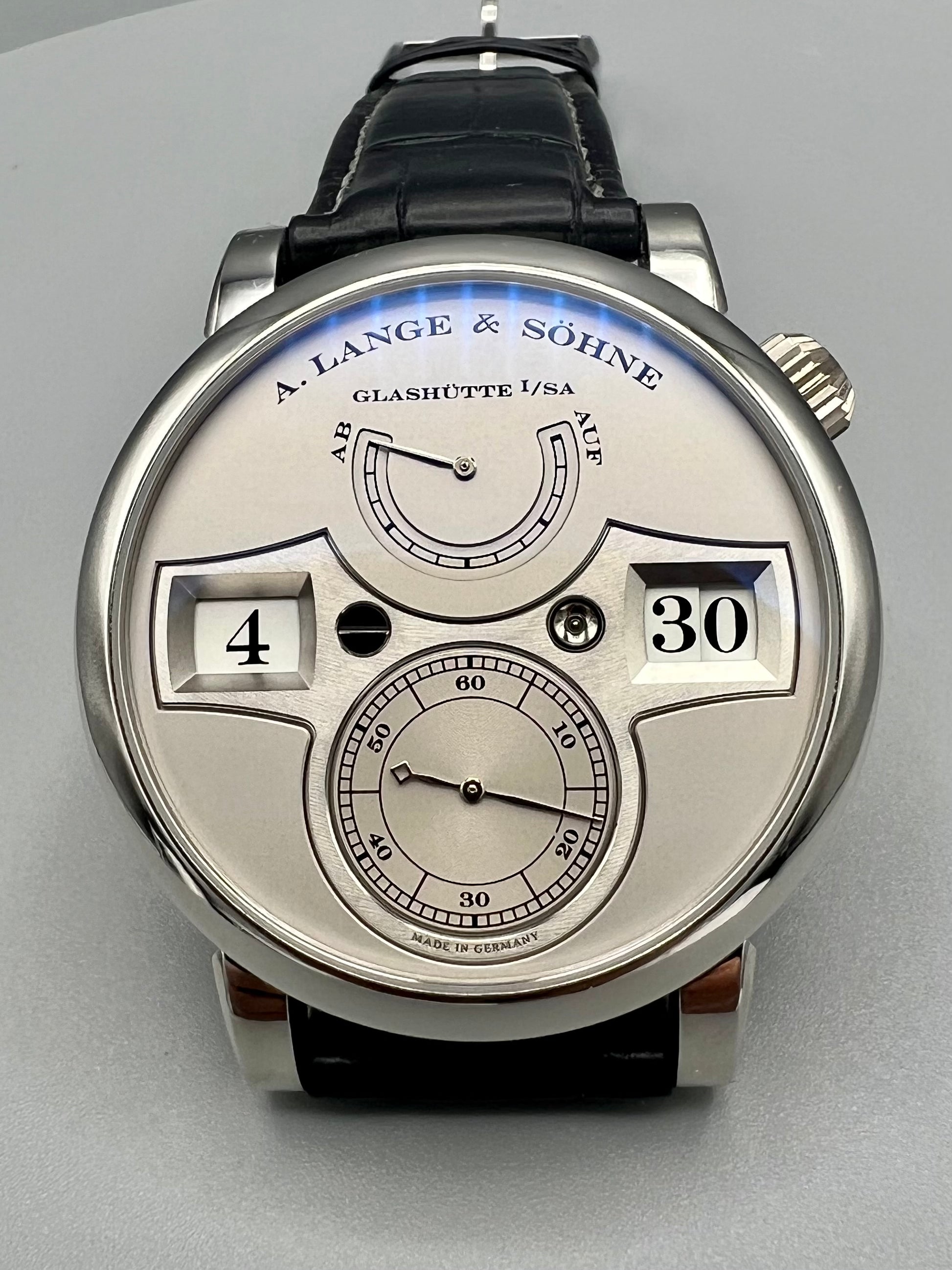This pre-owned A Lange & Söhne Zeitwerk Platinum Limited Edition Watch 140.025 is in fantastic all original condition, and is accompanied by the Certificate of Origin and the manufacturer's box.