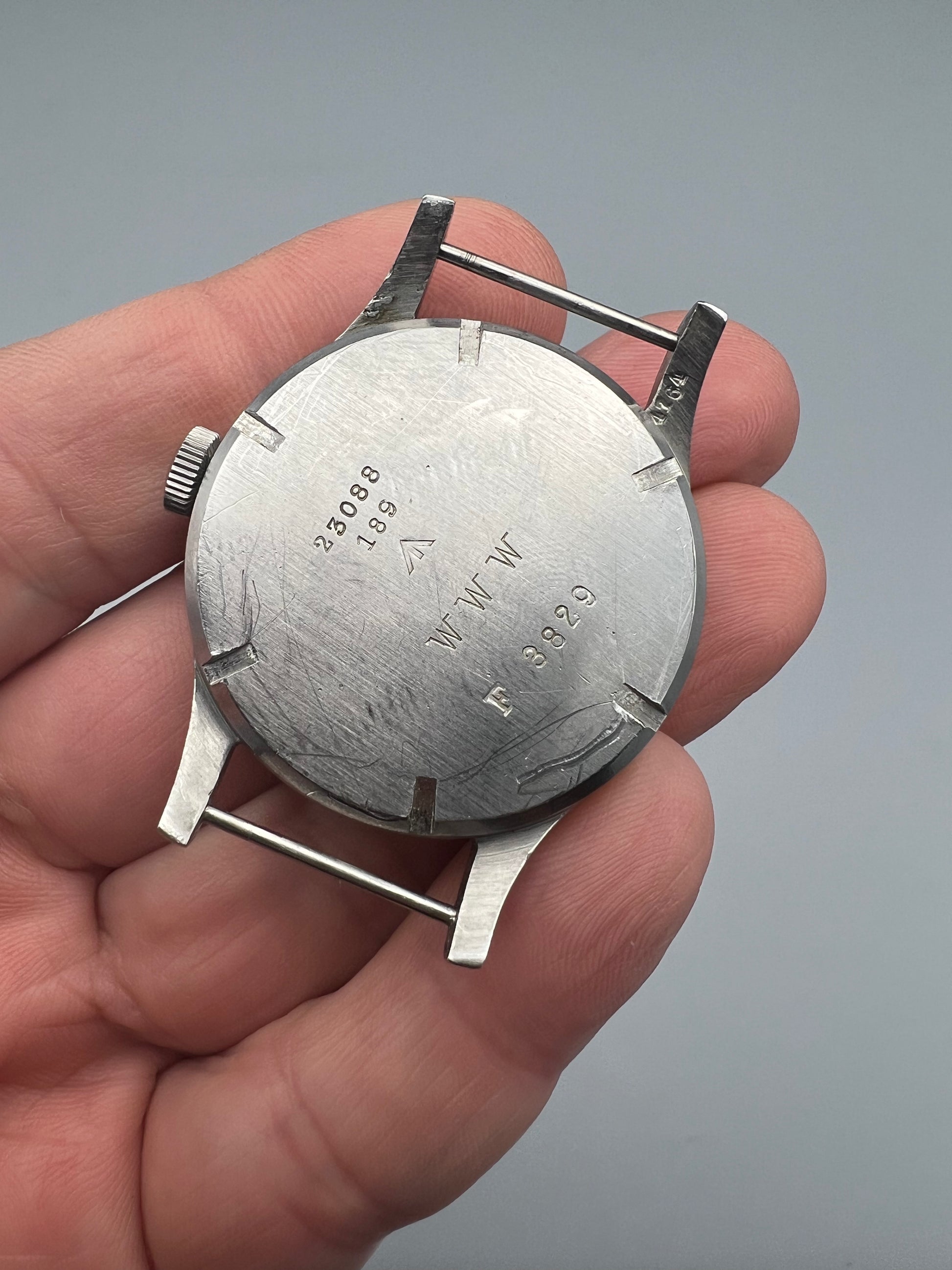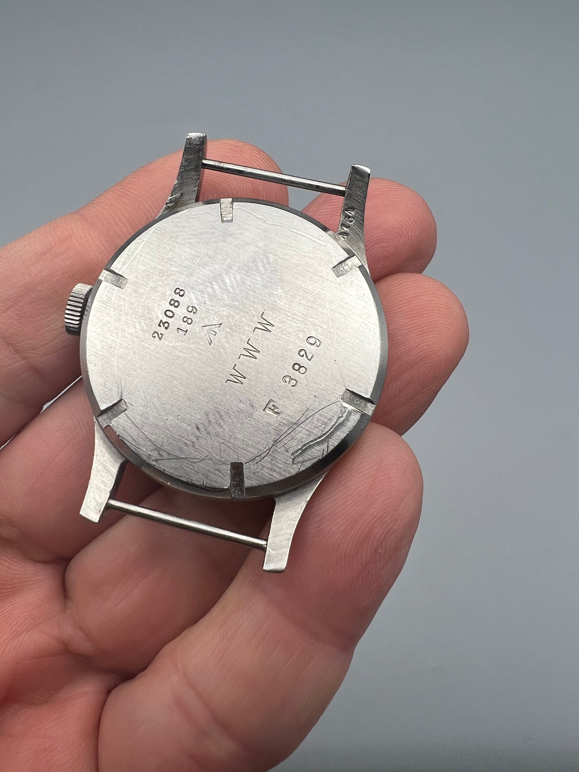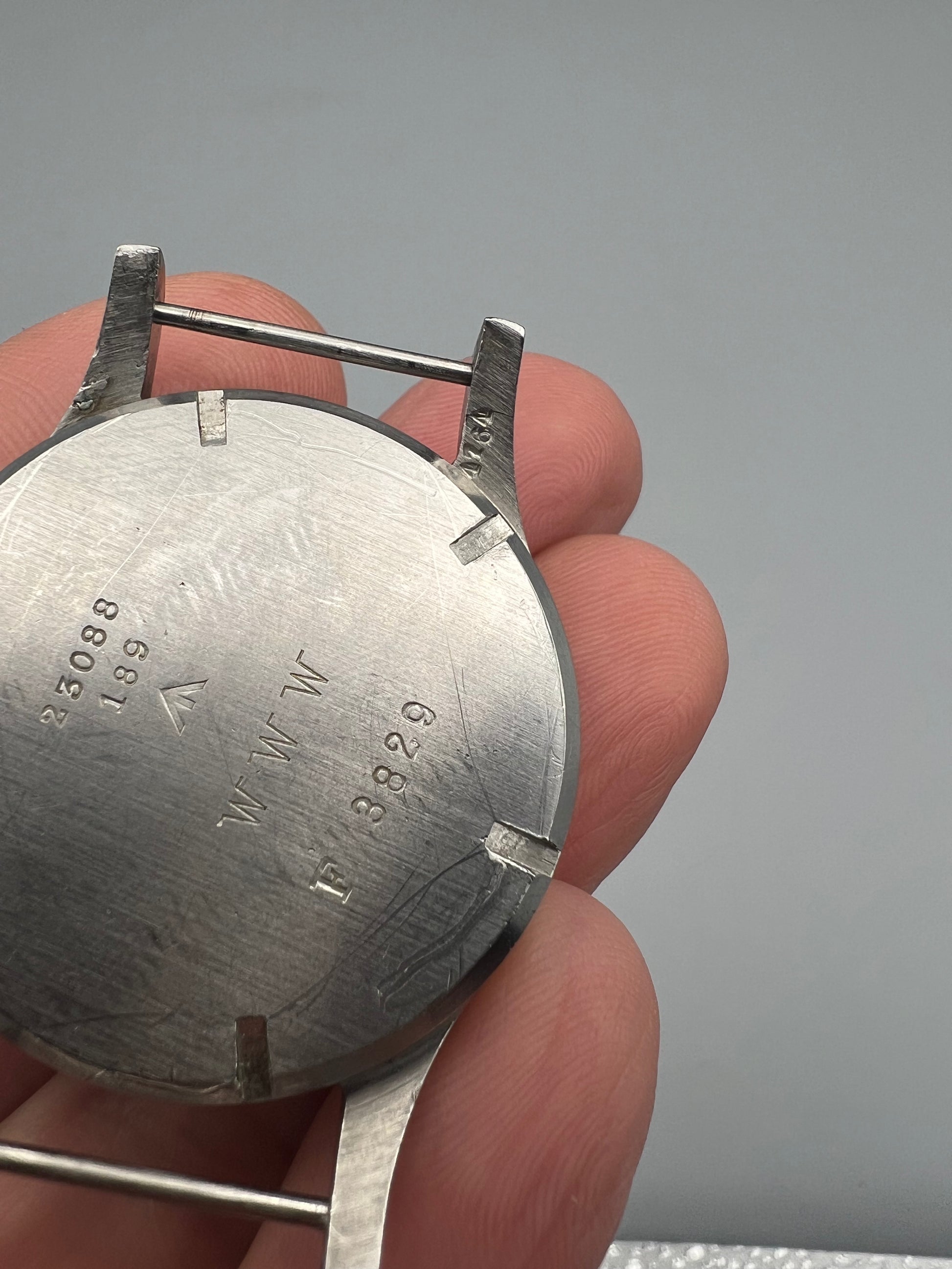 This in an original military issue watch, equipped with the Longines Caliber 12.68 Z gilt brass, Chronometer-grade manual movement, featuring: 15 Jewels, anti-shock, straight-line lever escapement, anti-magnetic monometallic balance, self-compensating Breguet hair spring, mircrometer regulator. Waterproof case number 3829.