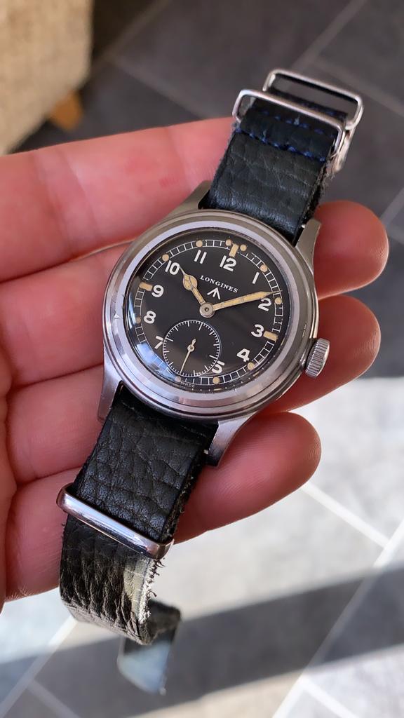 Beautiful and rare Longines Greenlander, circa 1940s. The largest and rarest of the Dirty Dozen military watches produced for the RAF, the Greenlander’s case measures at 38 mm in diameter and 12 mm thick. The dimensions give the watch a hefty and modern feel.