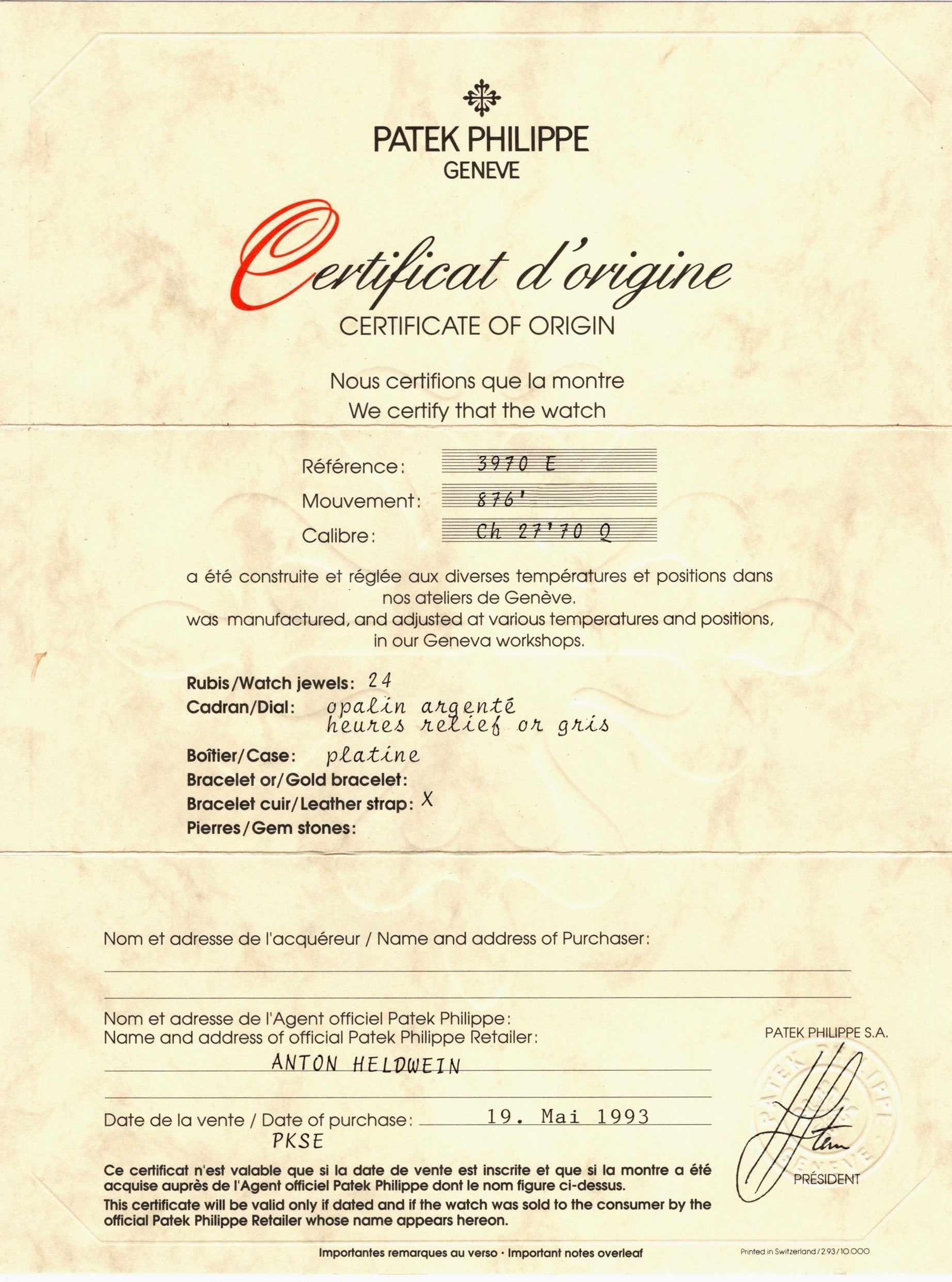 Manufactured in 1993, this platinum transitional 3970E represents a rare and collectible example, blending early-series charm with modern refinements and impeccable service history.