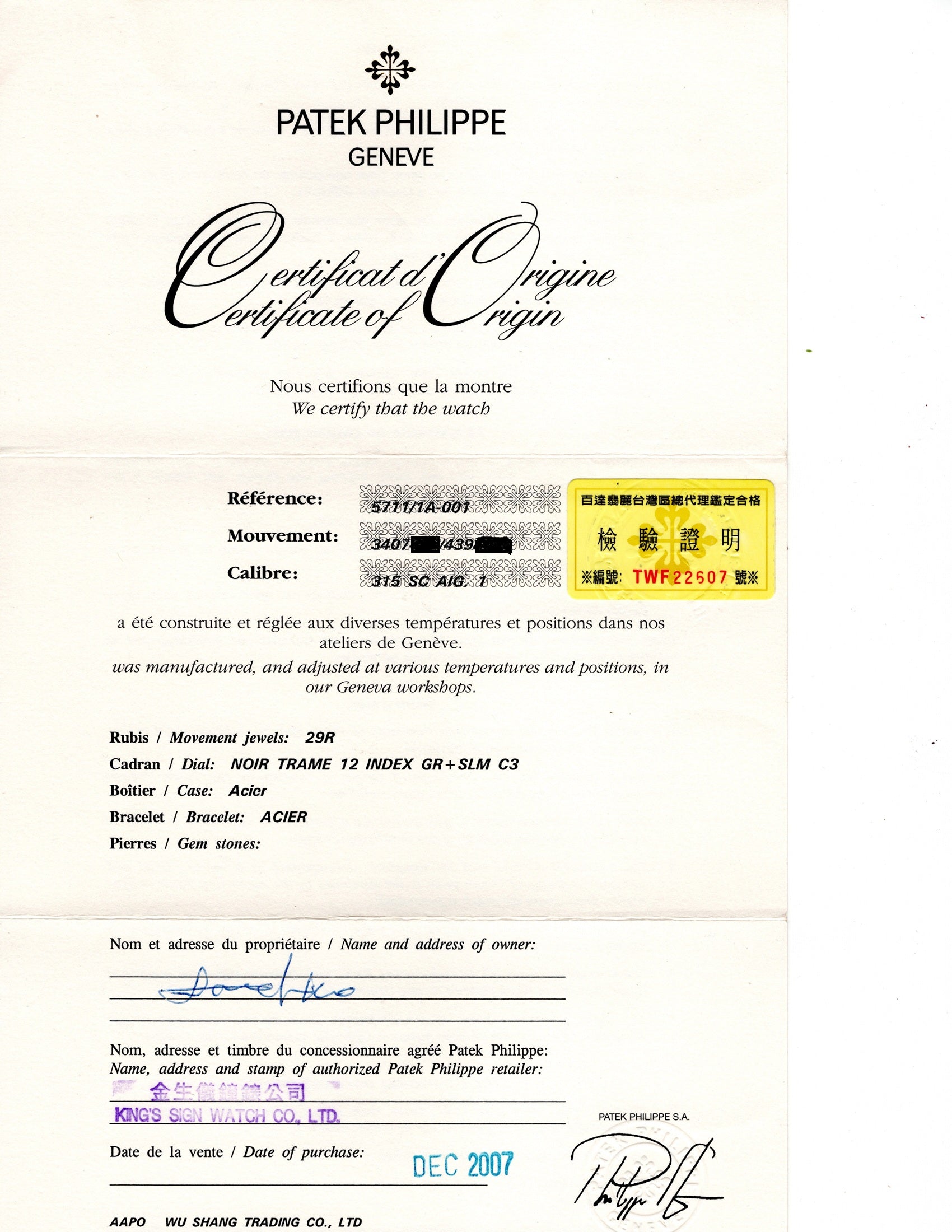 Production of the 5711/1A-001 was limited to two years, with estimates suggesting fewer than 1,000 examples were made before design revisions were introduced—underscoring the rarity of early, untouched specimens such as the present watch.