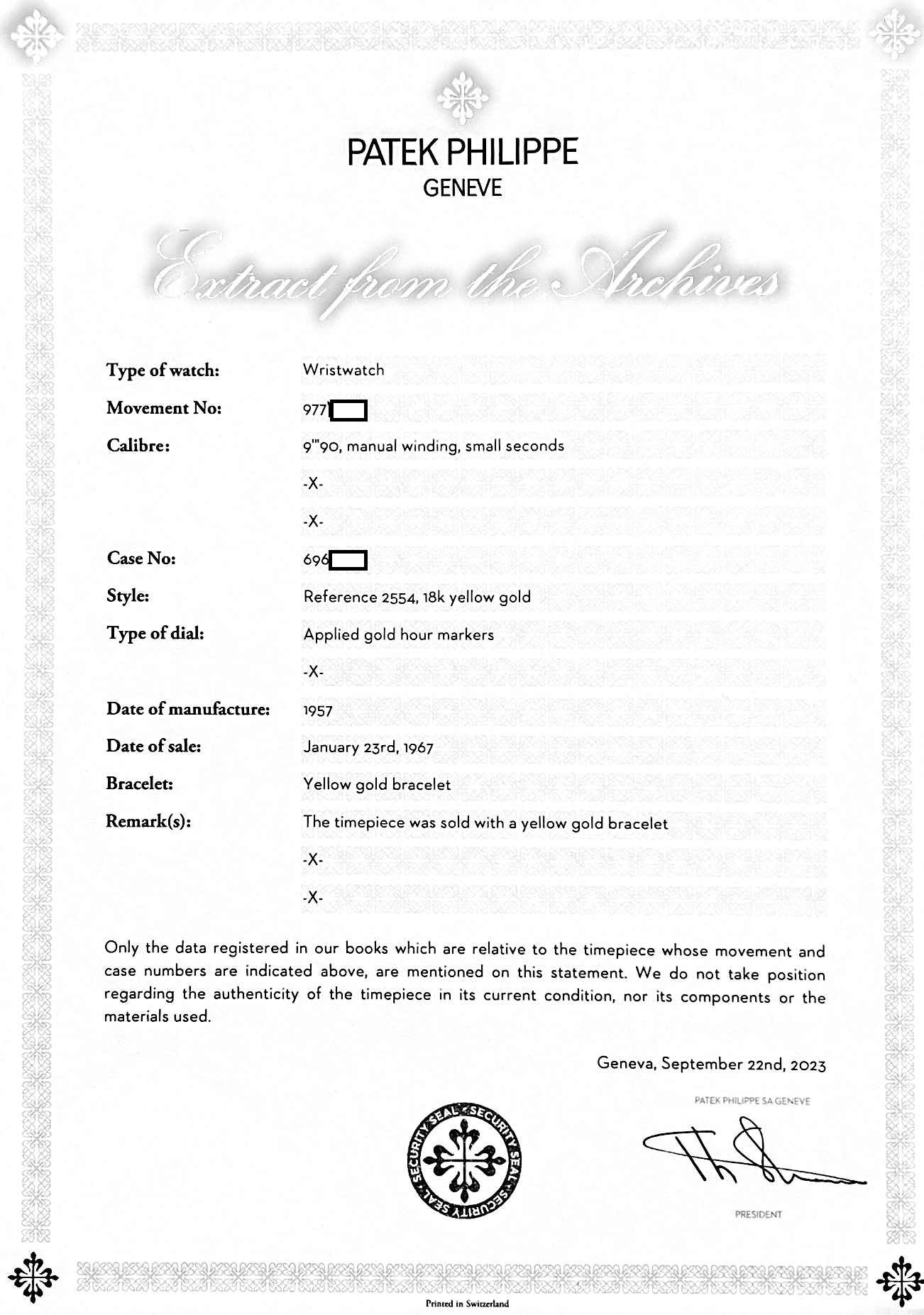 Includes Patek Archival Extract confirming production of this watch in 1957.