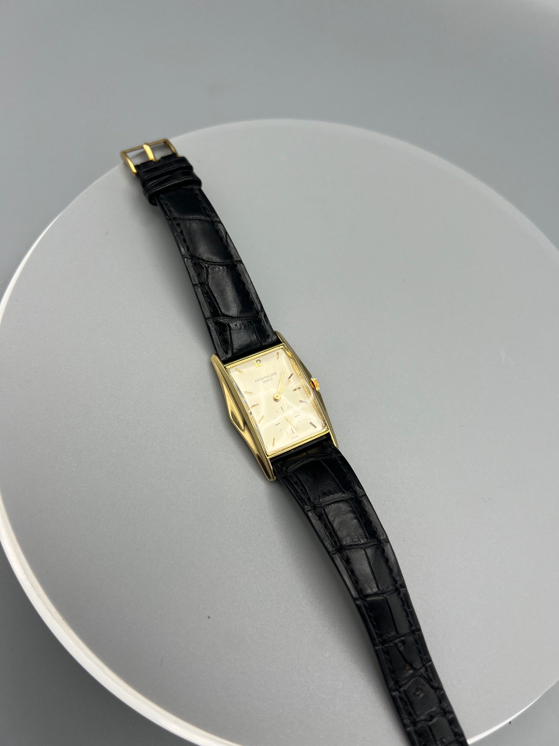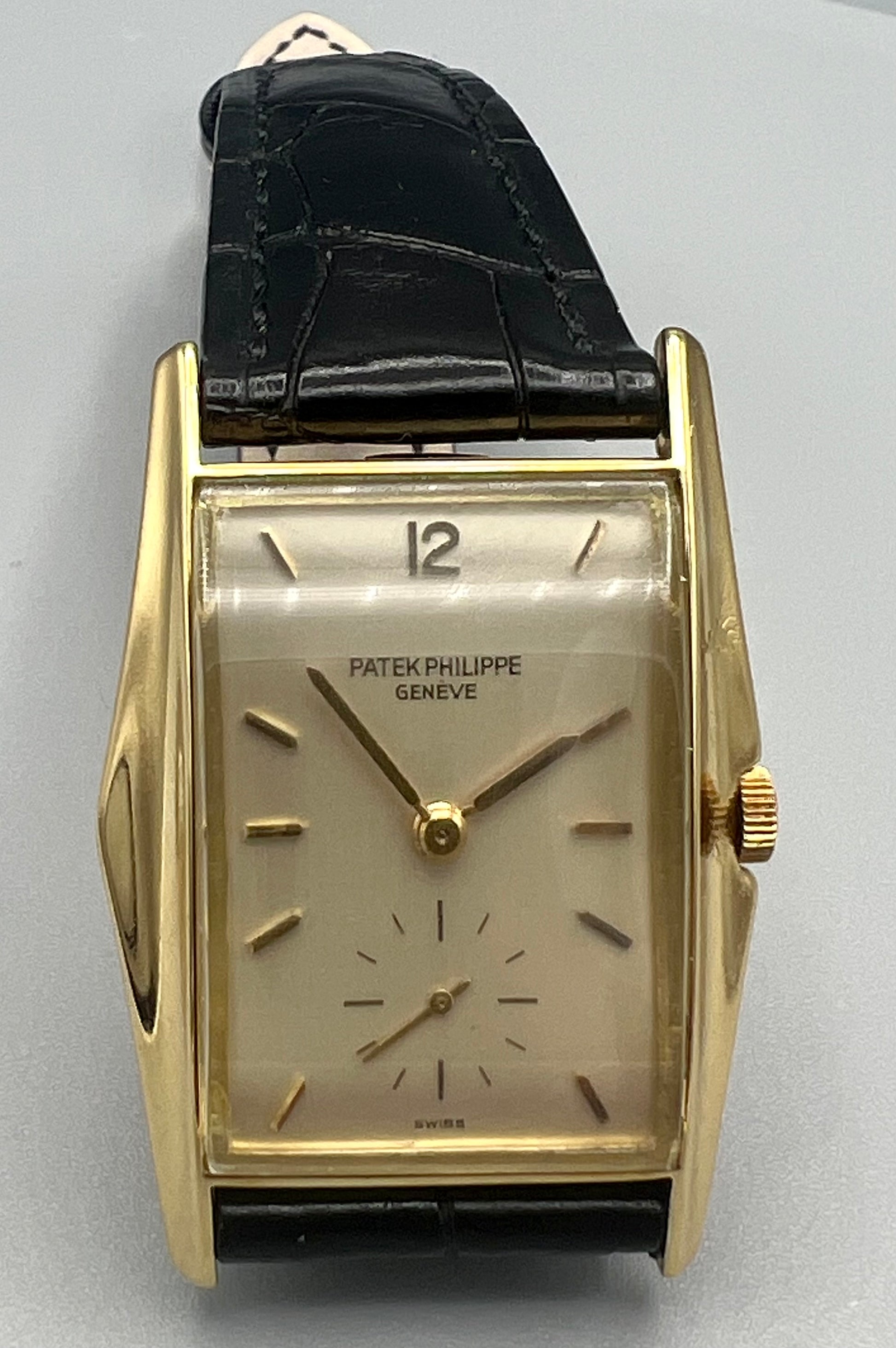 Patek Philippe Ref 2554 J, also known as the “Manta Ray”, is one of the rarest rectangular avant-garde wristwatches from Patek Philippe’s post-war production era. Very few 1950s designs exude as much confidence, flamboyance, and elegance as the Ref 2554, and among the surviving examples a handful are preserved in such good condition as the present example.