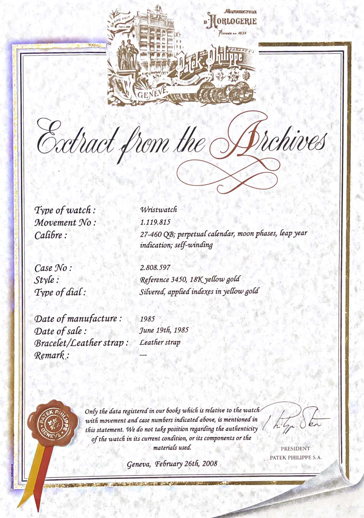 Patek Philippe Ref 3450, Crica 1985, Gübelin Double Signed Dial