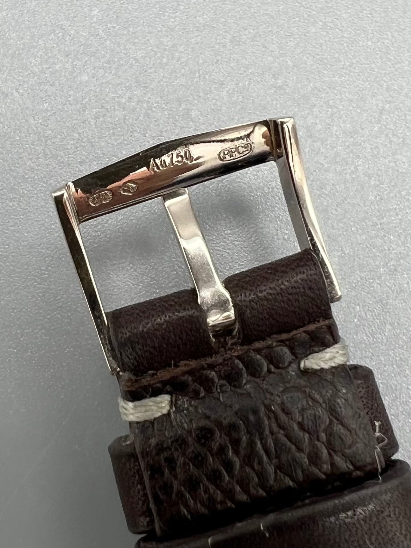 While the watch is an antique, it has a versatile and sporty look. We installed a beautiful new custom-made Bernina leather strap with hand-stitching from our friends and partner ABP Concept in Paris. Use the coupon code PWC15 for a 15% discount off their watch straps.