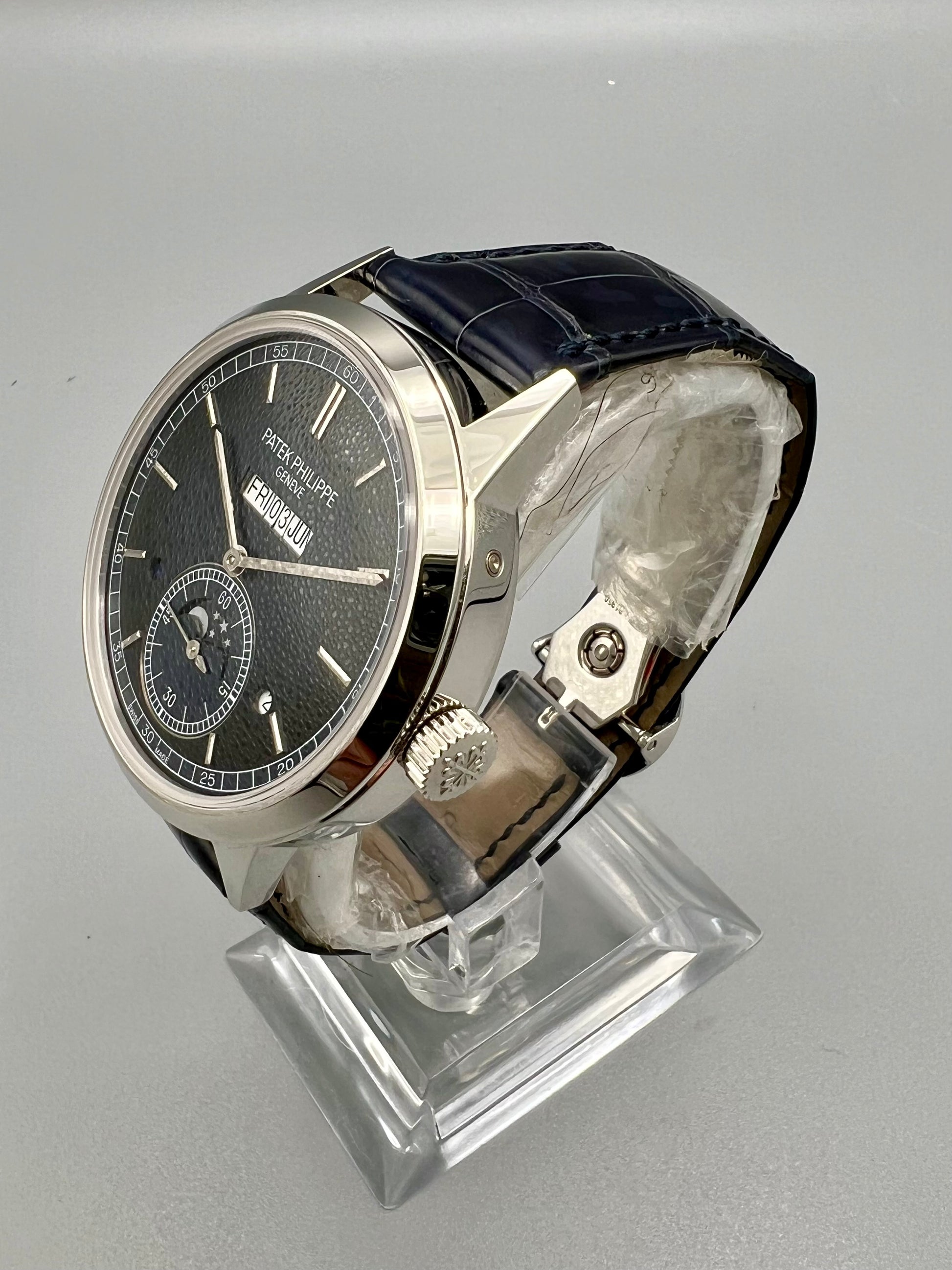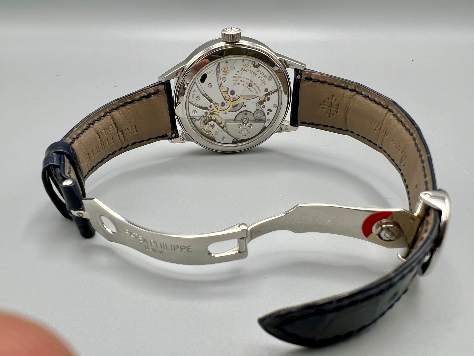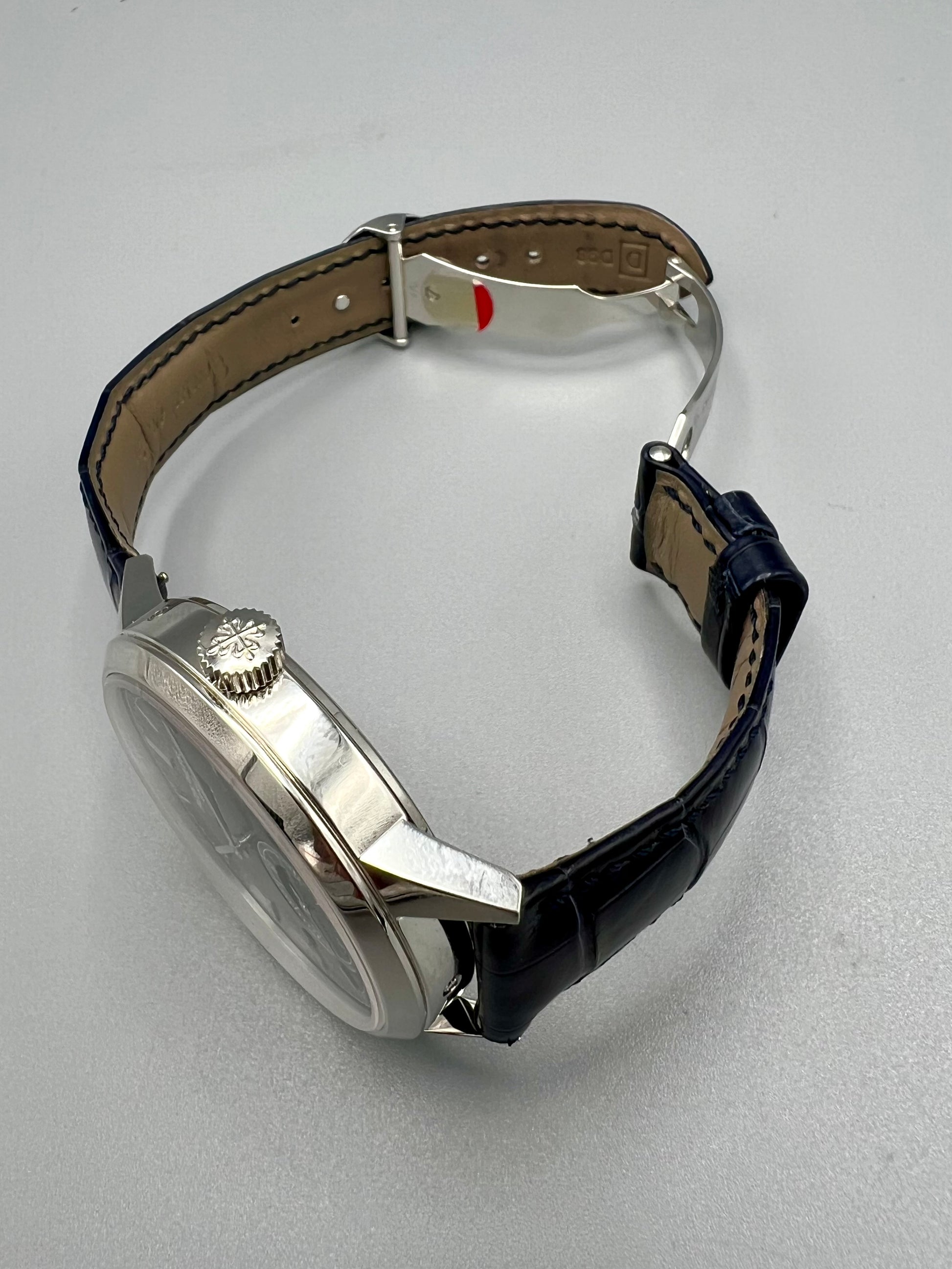 We are normally not a fan of large watches, but every millimeter of the larger case is functional: firstly, the dial has to be larger to accommodate the in-line date function with good legibility. Secondly, Patek used the extra room for a larger winding rotor and a more elaborate movement that is most pleasing to the eye. Compared to Cal 240Q seen in the previous references, there are now separate bridges and cocks for the escape wheel and balance wheel, which makes the machine look more intriguing.