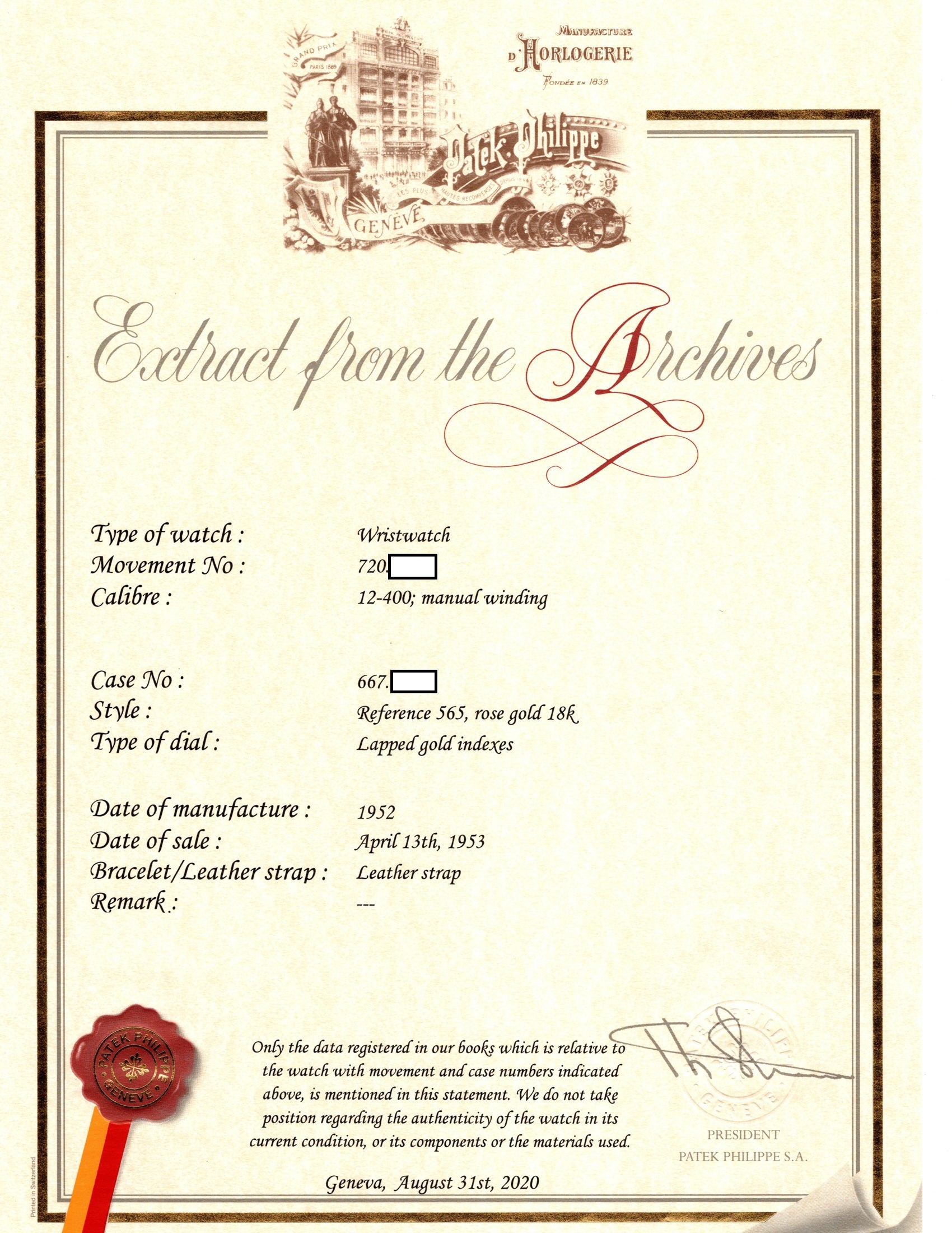 Patek Philippe Ref 565 Rose Calatrava Freccero Dial 1952 Extremely Rare