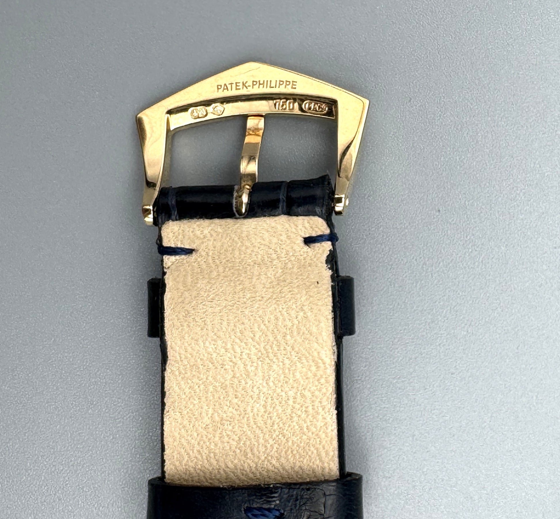 The case design is distinctly sportier than its contemporary Calatravas, with the lugs blending flush into the bezel and the movement and screw back case sitting below the lugs. This reference served as the blueprint for the limited-edition Ref 5565A that Patek created to commemorate the reopening of their new Geneva salon.