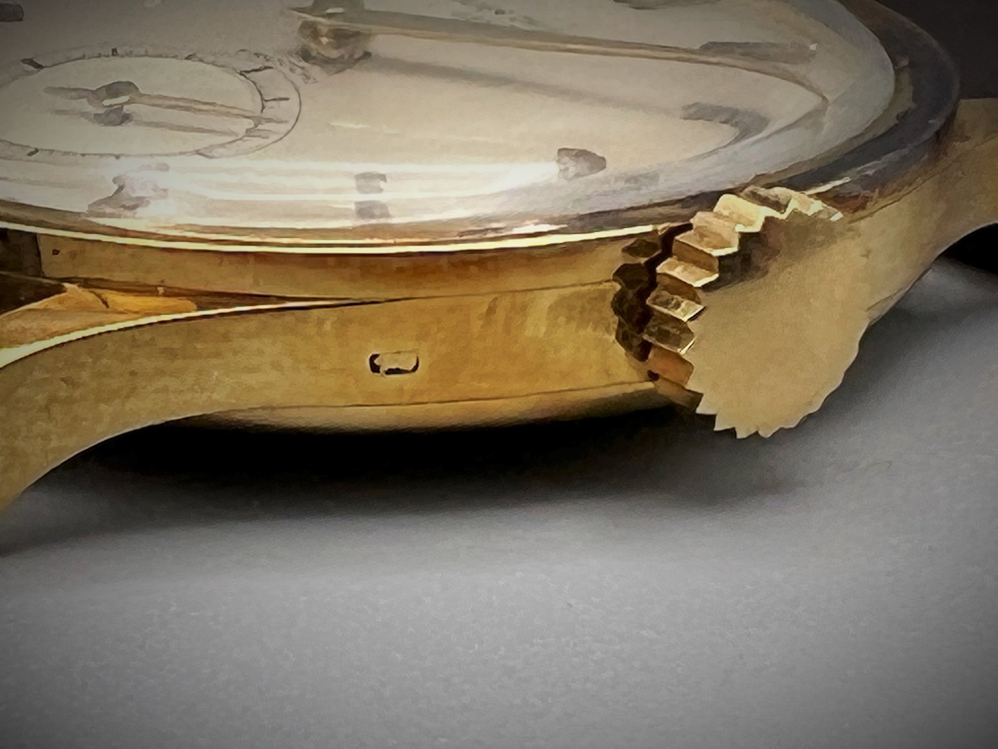 This timepiece presents in extraordinary, all original condition. The case with rich natural patina to the gold and showing no signs of polishing and no repair marks on the case back interior. The dial is superb. The movement is rich original finish.