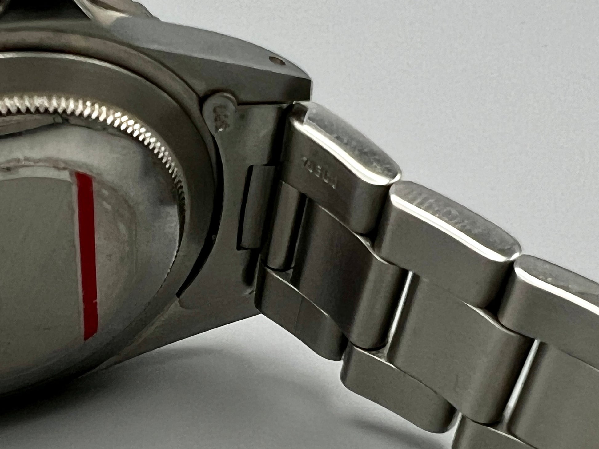 Known as the matte radial dial, the Mark 3 was made for only a short period between 1975-1978. It’s an easy model to identify. One needn't scrutinize the fonts to recognize a Mark 3 dial. Rather, look at the lume plots. They are smaller than the those on the Mark 2, and they're placed a bit farther from the track when compared to previous matte dial 1675s. This dial was in short production and in in some ways, it is reminiscent of the earlier 6542s. Factory original all-red 24-hour hand.