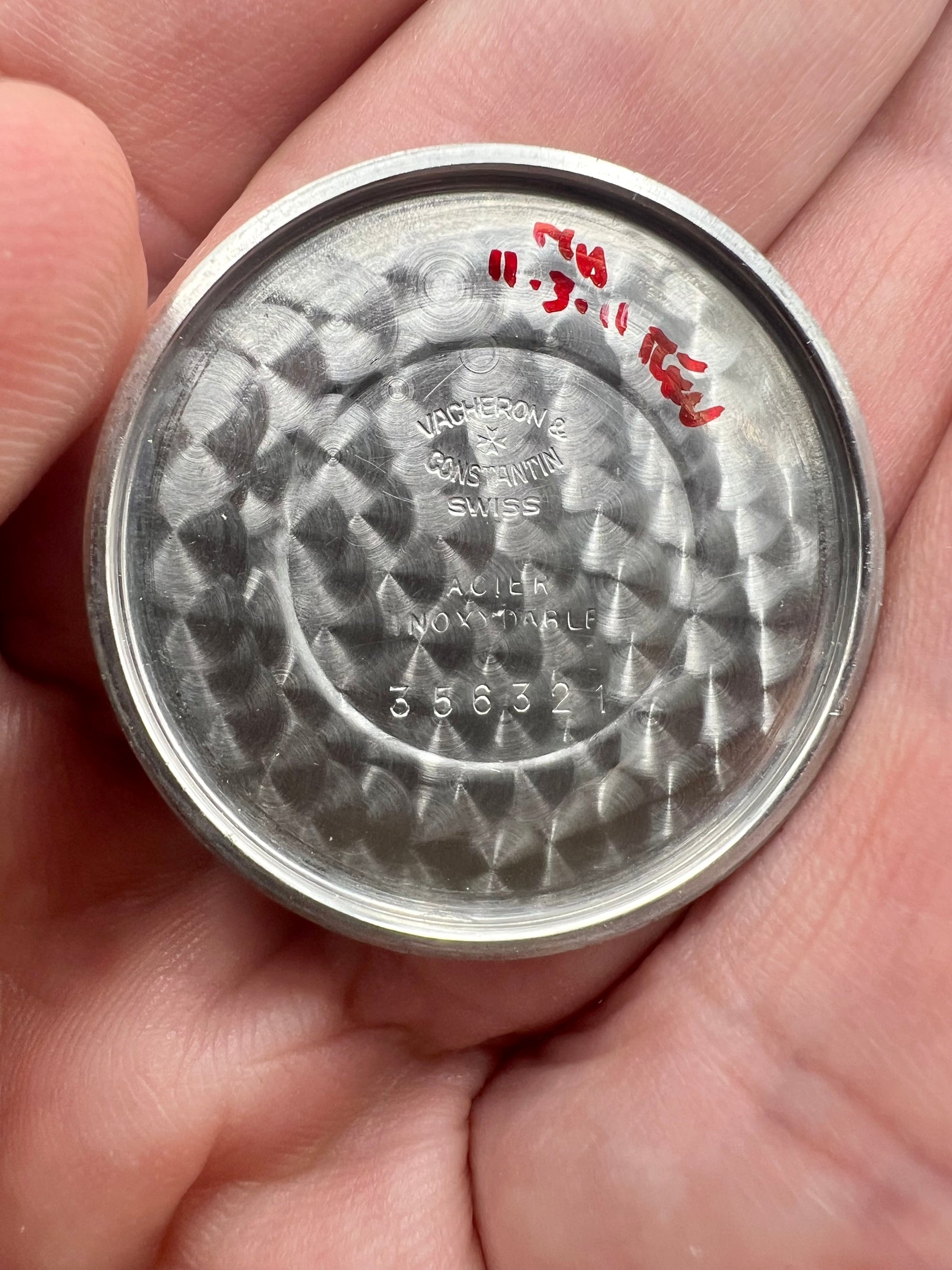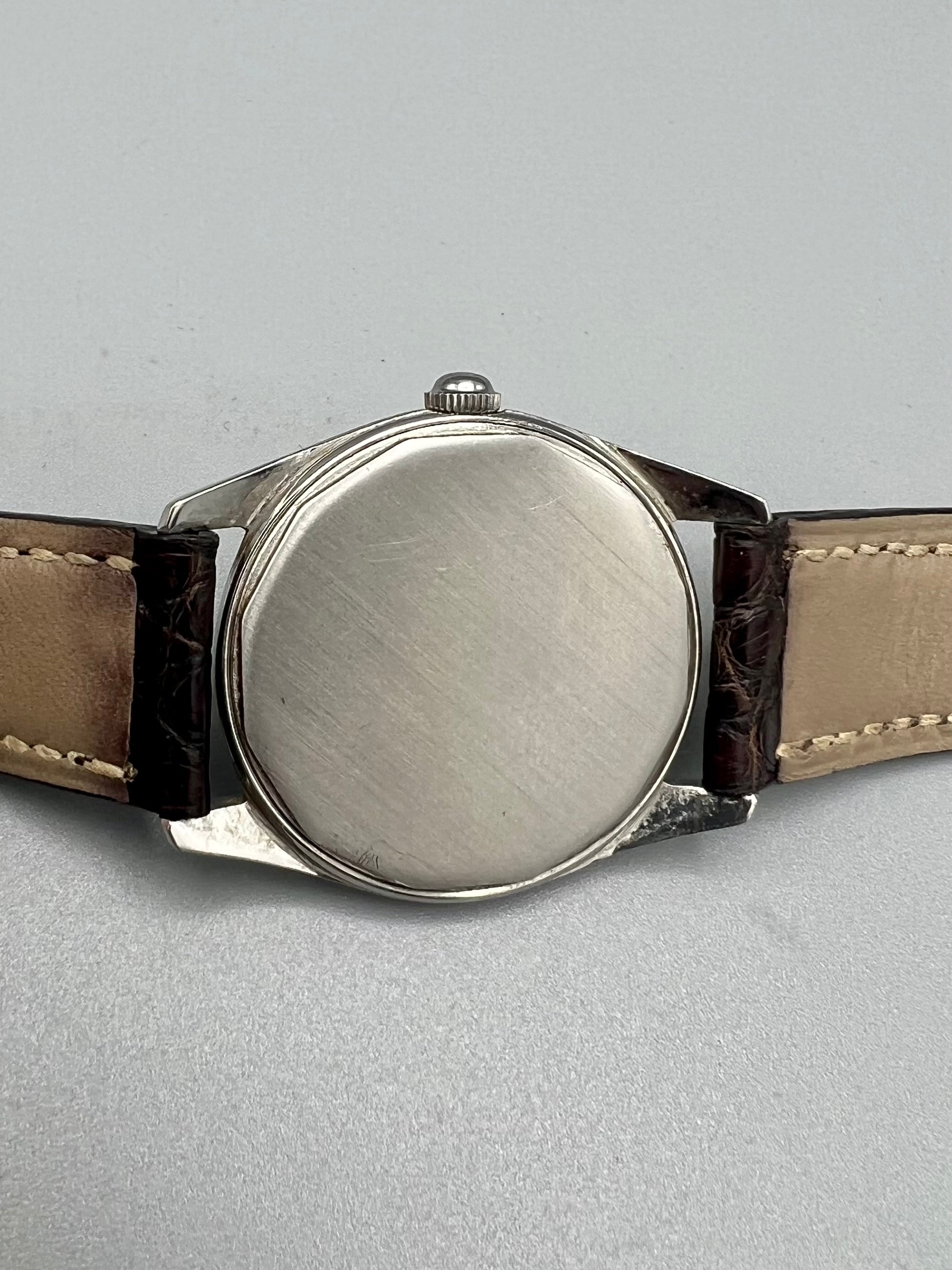 This 33 mm watch is pristine and original inside and out. The case appears unpolished, and the dial is original with an eggshell fish in the center. Just a very discreet, beautiful, and classic dress watch.
