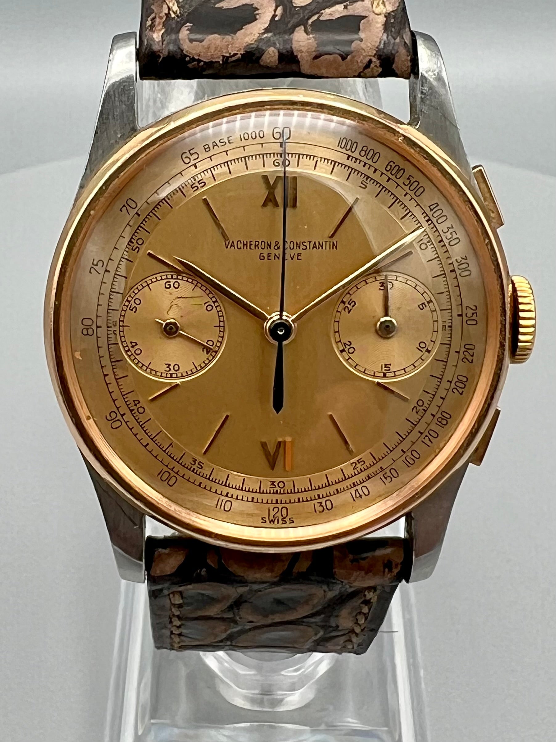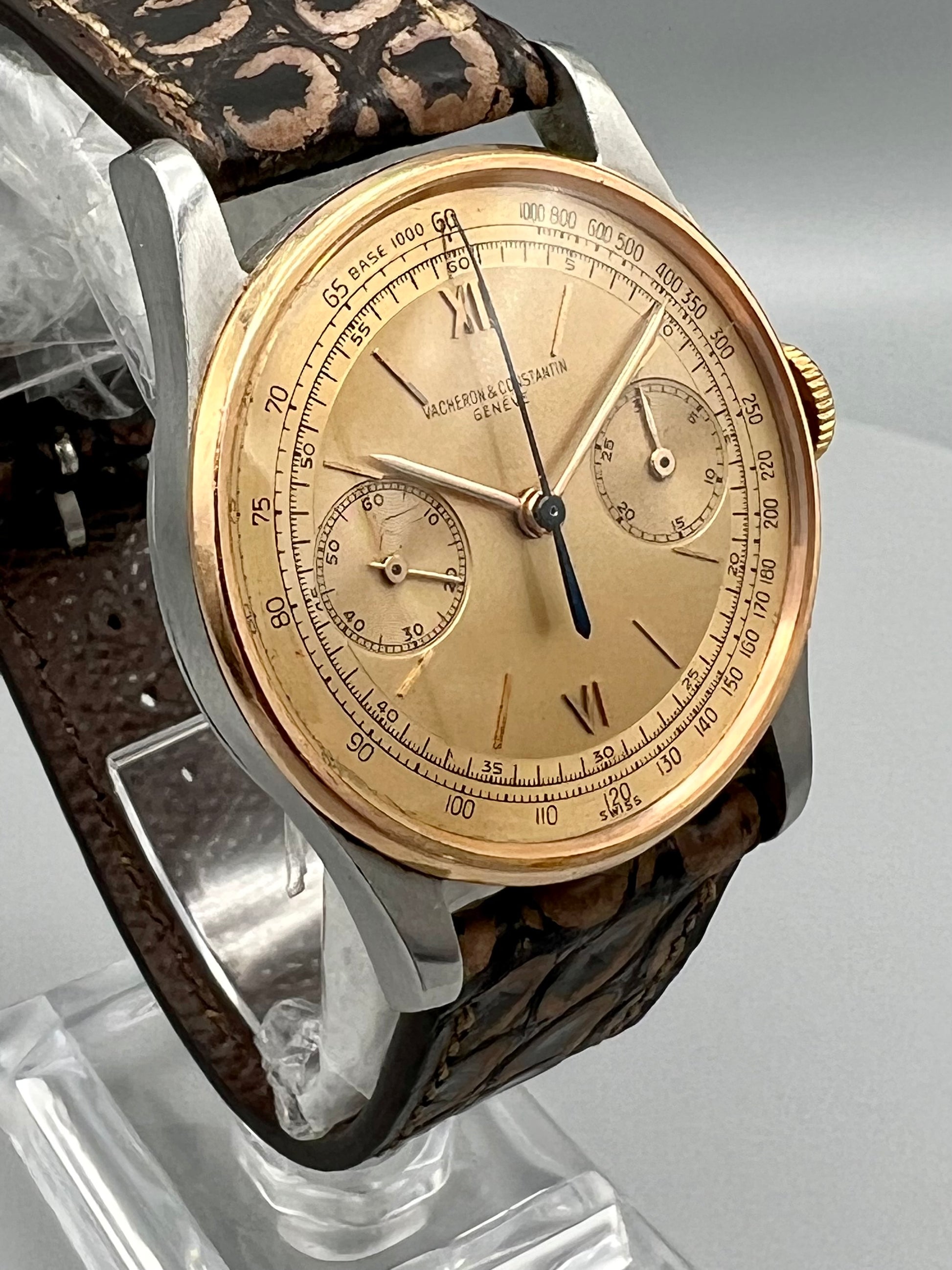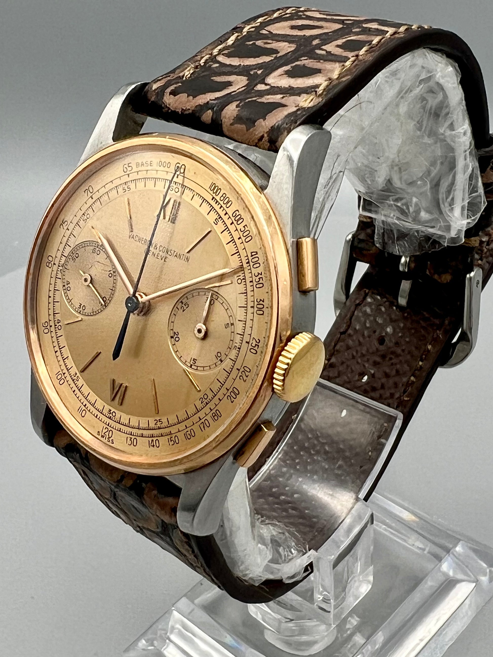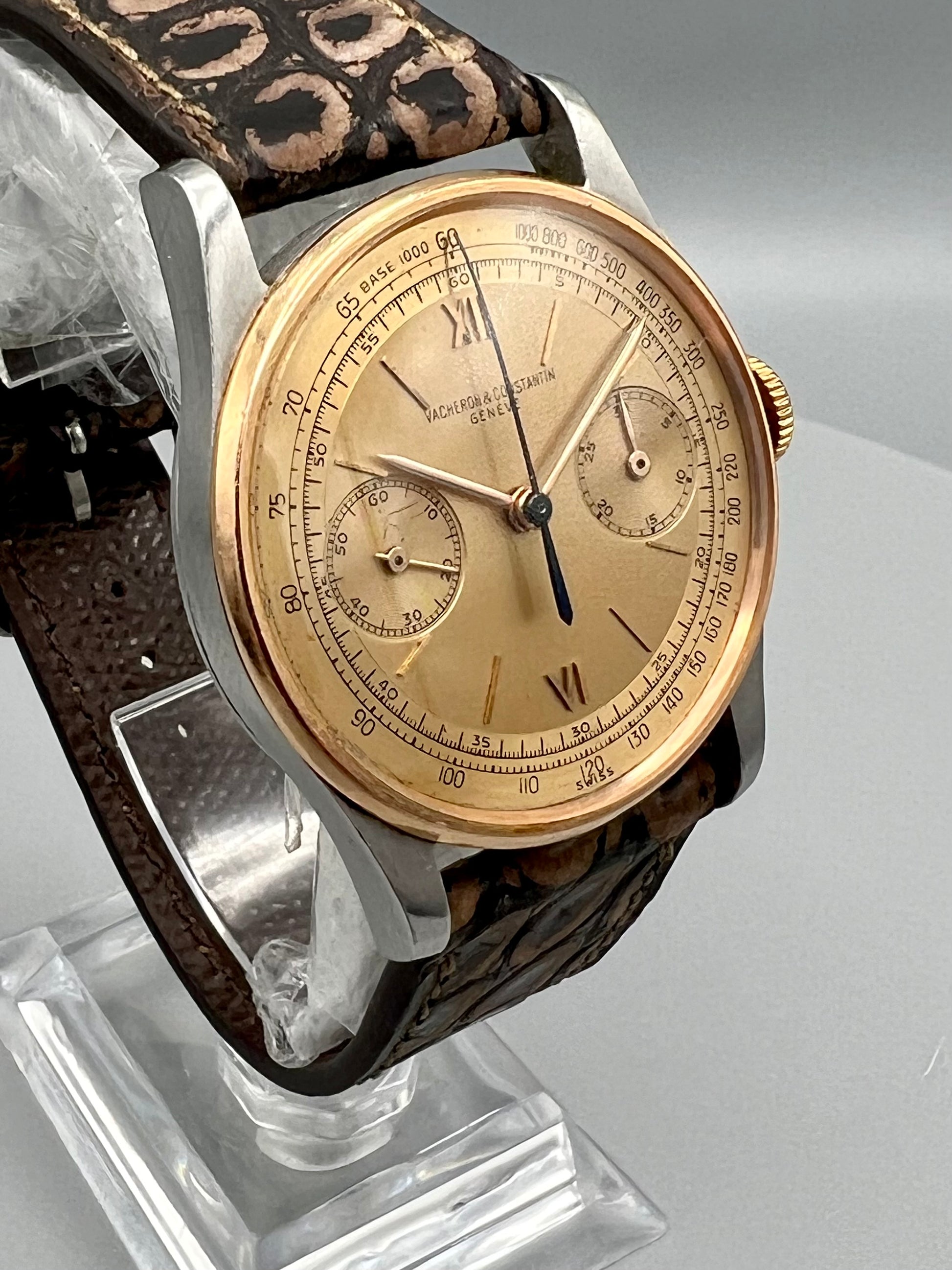 Vacheron Constantin Extremely Rare Stainless Steel and Rose Gold Chronograph with Champagne Dial circa 1945