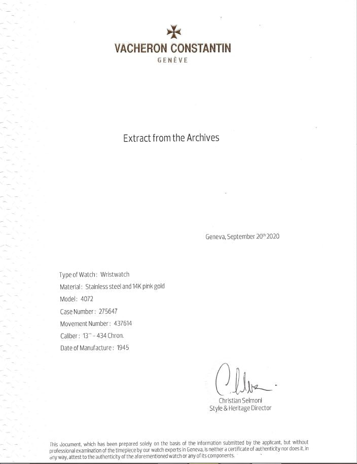 This is a stunning Ref 4072 in astonishing condition from 1945. Vacheron Constatin (VC) chronographs of the 1940-1950s period are considered among the most beautiful and high quality watches ever produced by the Swiss industry. Moreover, the two-cases are extremely rare especially when you consider the exceptional condition of this example and the two-tone champagne dial on the watch. Our photos don’t do justice to this piece.