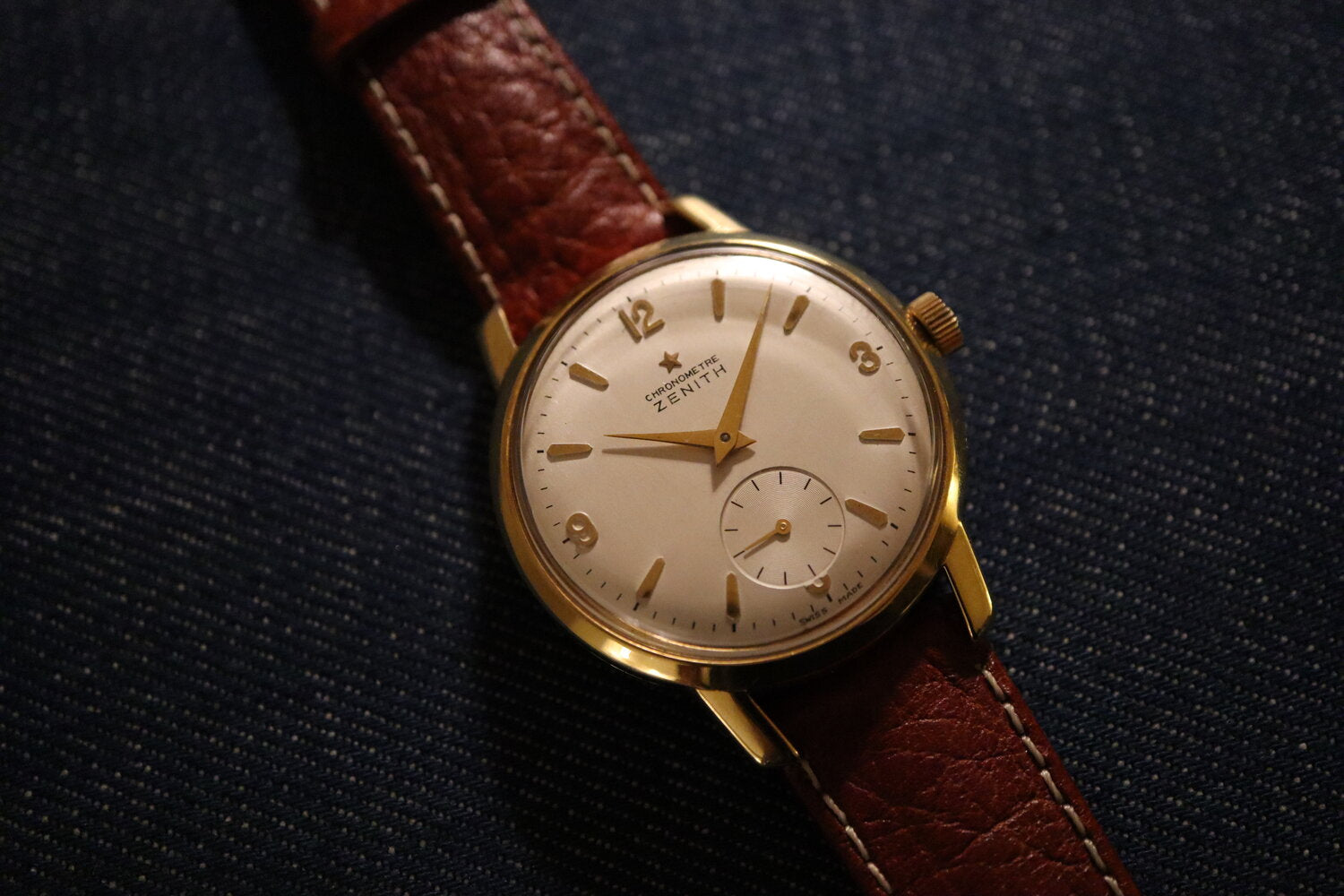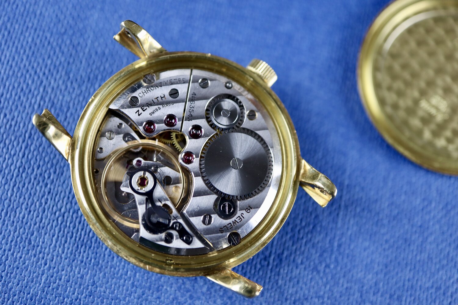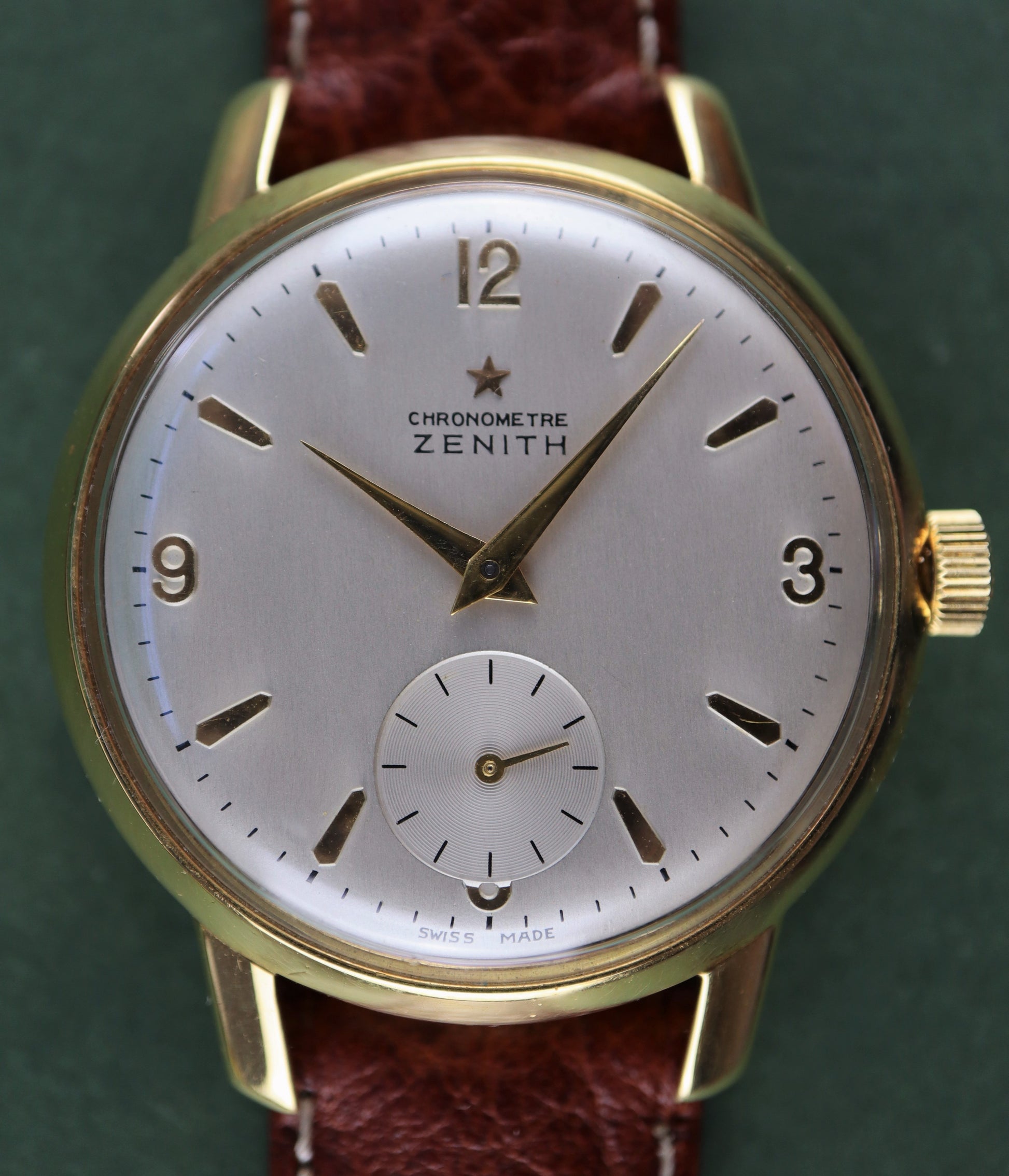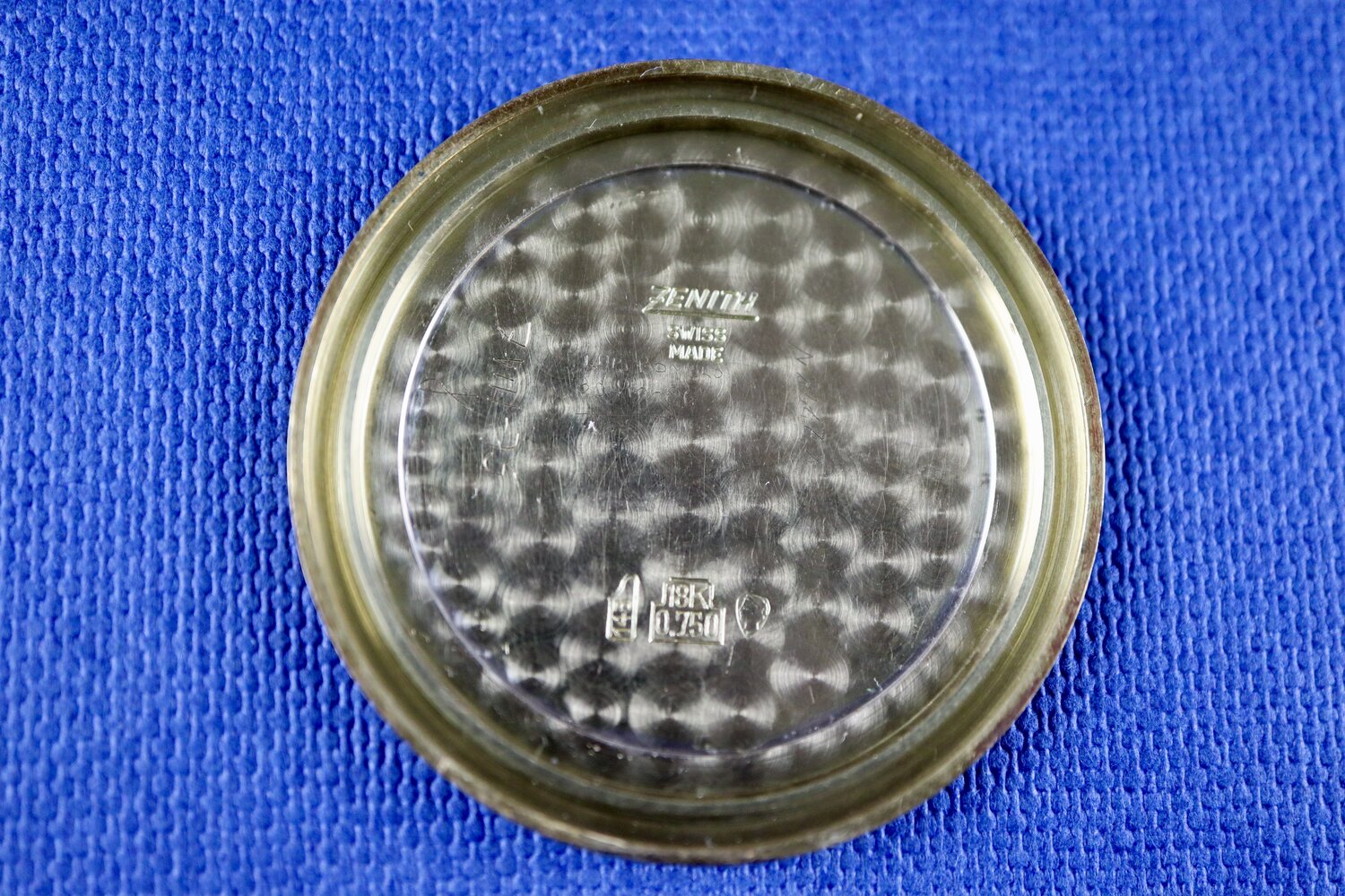 The majority of the Zenith Caliber 135 timepieces were produced in steel, consistent with its intent to be a tool watch. There are some examples in 14k gold, but very few examples out of the 11,000 were made in 18k gold and even fewer have survived in this incredible condition.