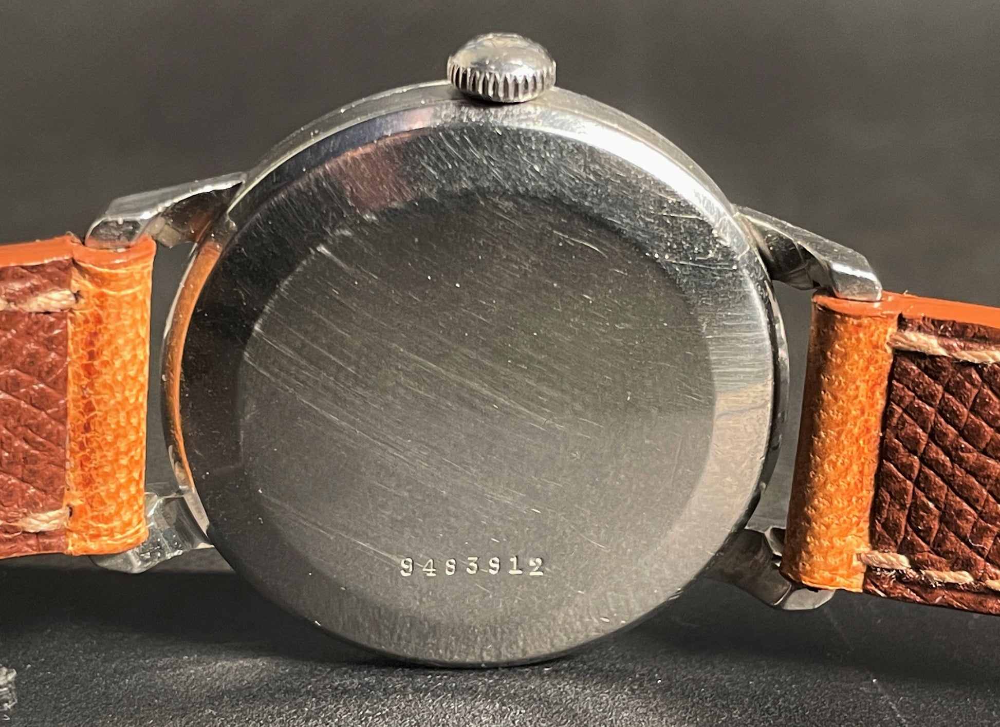 The condition of this watch is remarkable. Case is without a doubt unpolished, the dial is perfect and original, and the case back is free of scratches with clear serial number visible. There is a small hallmark on the front of the top left lug which is characteristic of watches imported to the Portuguese market.