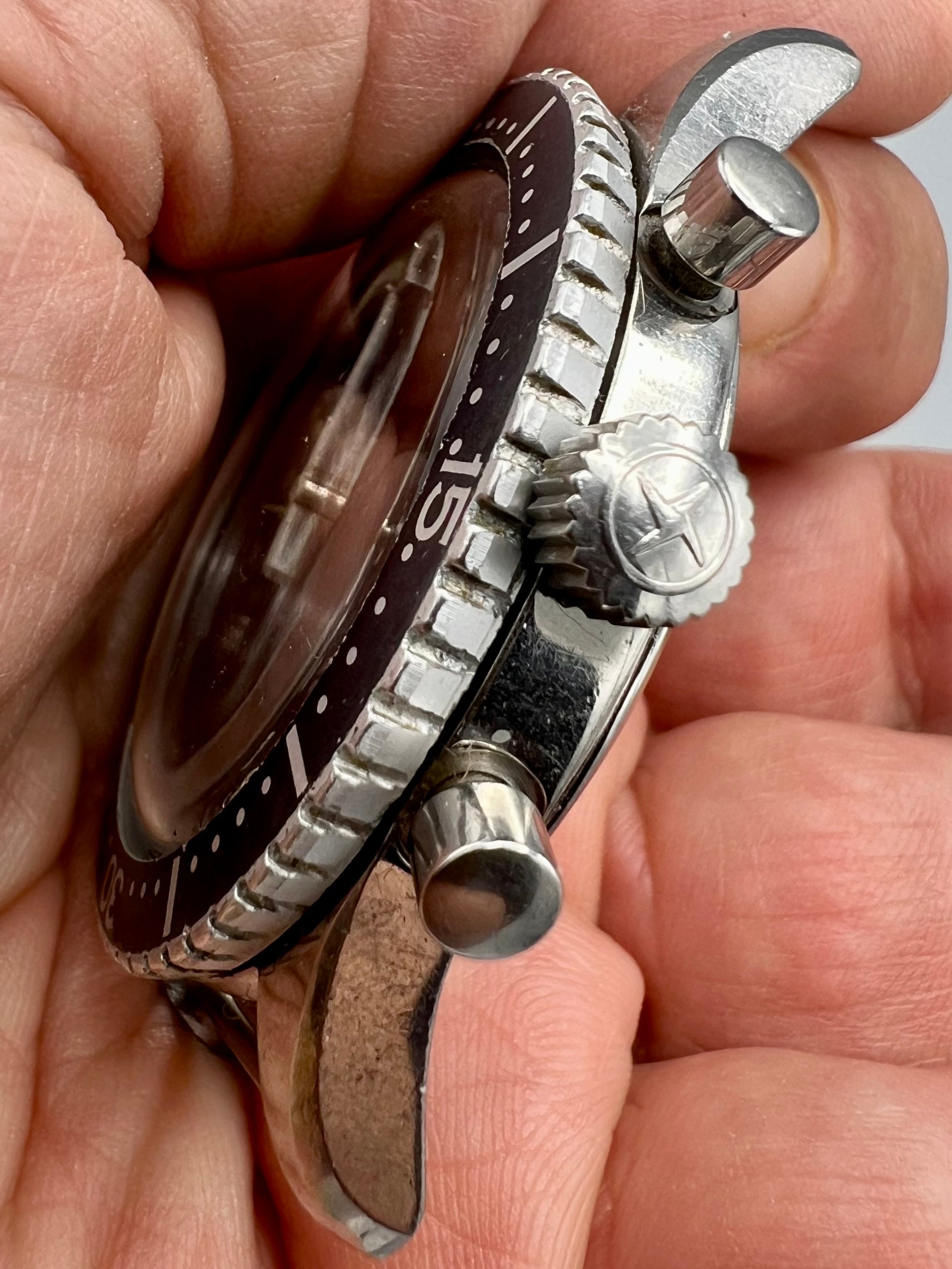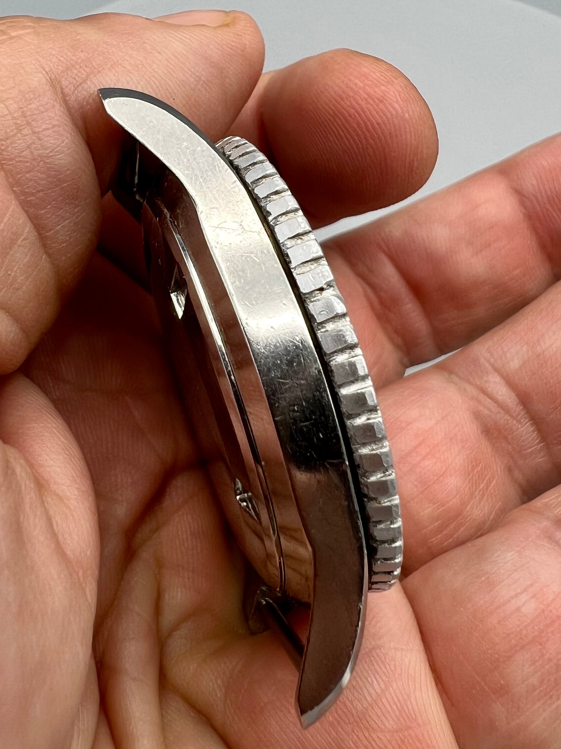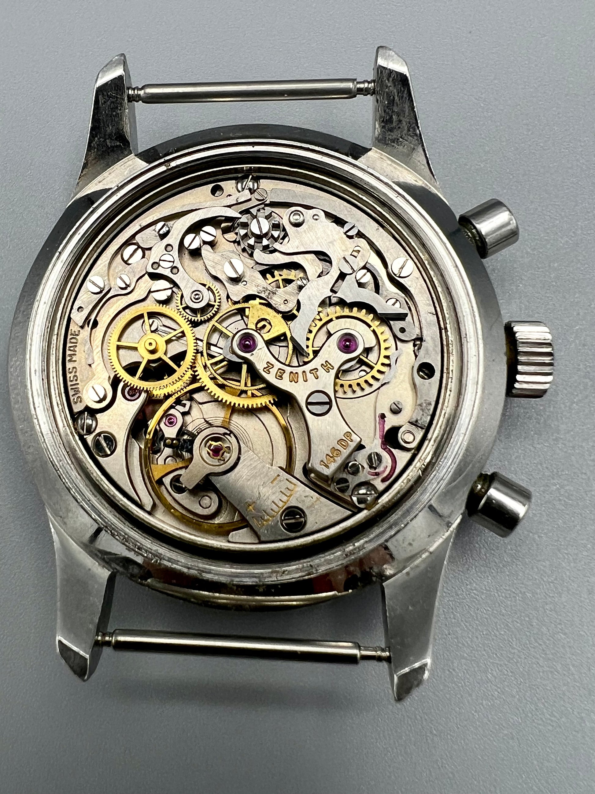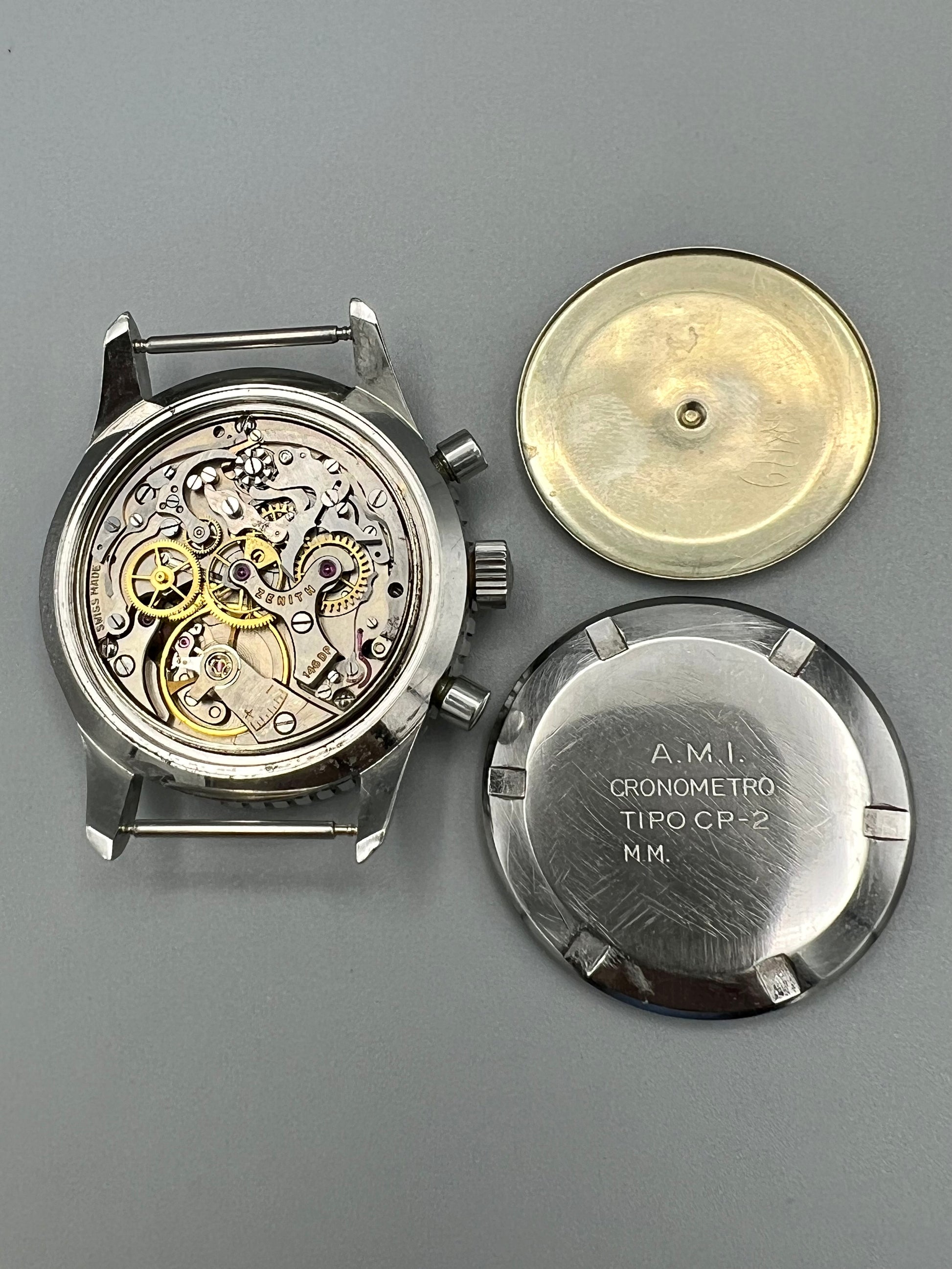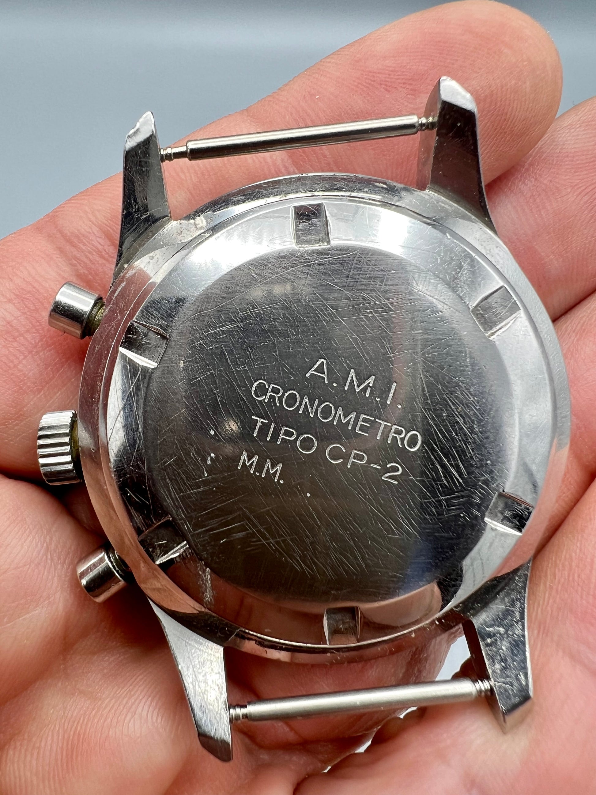 Cairelli was a retailer of mechanical instruments in Rome. Their name not only appeared on wristwatches they supplied to the Italian Air Force, but was also printed on some avionic instruments found in 1960s Italian Air Force F104 jets. The back of this watch is stamped AMI, which stands for “Aeronautica Militare Italiana.” This oversized watch was designed specifically by Zenith for Italian pilots to replace its predecessor, the Breitling CP1; but as the story goes, the Italian AF ordered too many of this reference and some ended up serving alongside their Panerai brethren in the Italian Navy. Our watch is one of the oddities that is inscribed both A.M.I. and M.M., for “Marina Militare.” For us watch geeks, this quirk pushes our watch into a small circle of military watch exceptions.